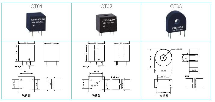 CT01-5/2.5W | 5A/2.5mA | <0.1% | <5' | 0A~20A | ≤800Ω | ||
